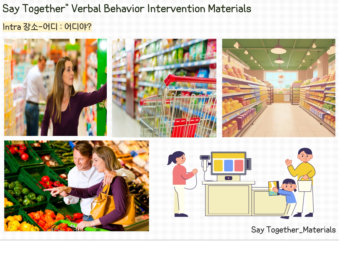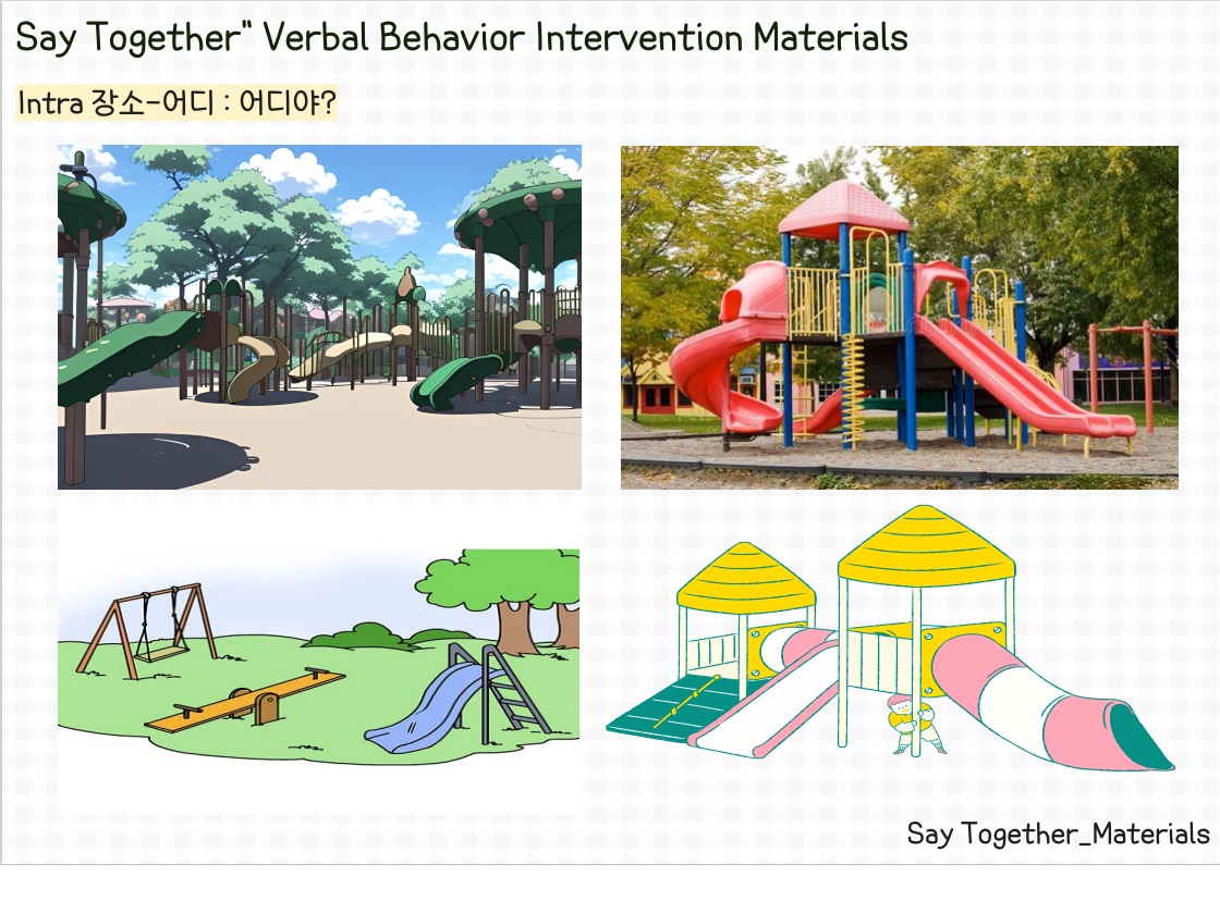 장소에 따른 사물, 사람, 활동에 대해서 Tact하고 점차 Intra로 전이시키는 활동으로 활용하시면 도움이 될 것입니다.